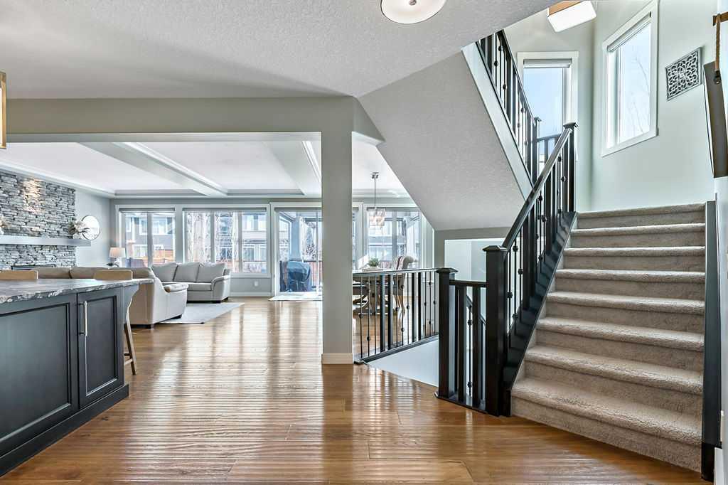 Welcome to Auburn Bay, one of Calgary’s most sought-after Lake Communities, offering year-round lakeside living. This immaculate property offers a blend of luxury, convenience, and a vibrant community lifestyle, boasting over 4,400 square feet of developed living space and is situated on a desirable corner lot, backing onto one of the community’s semi-private lake pathways. The gourmet kitchen is a chef's dream, featuring leathered granite countertops, custom stainless steel range hood, full-height cabinets...