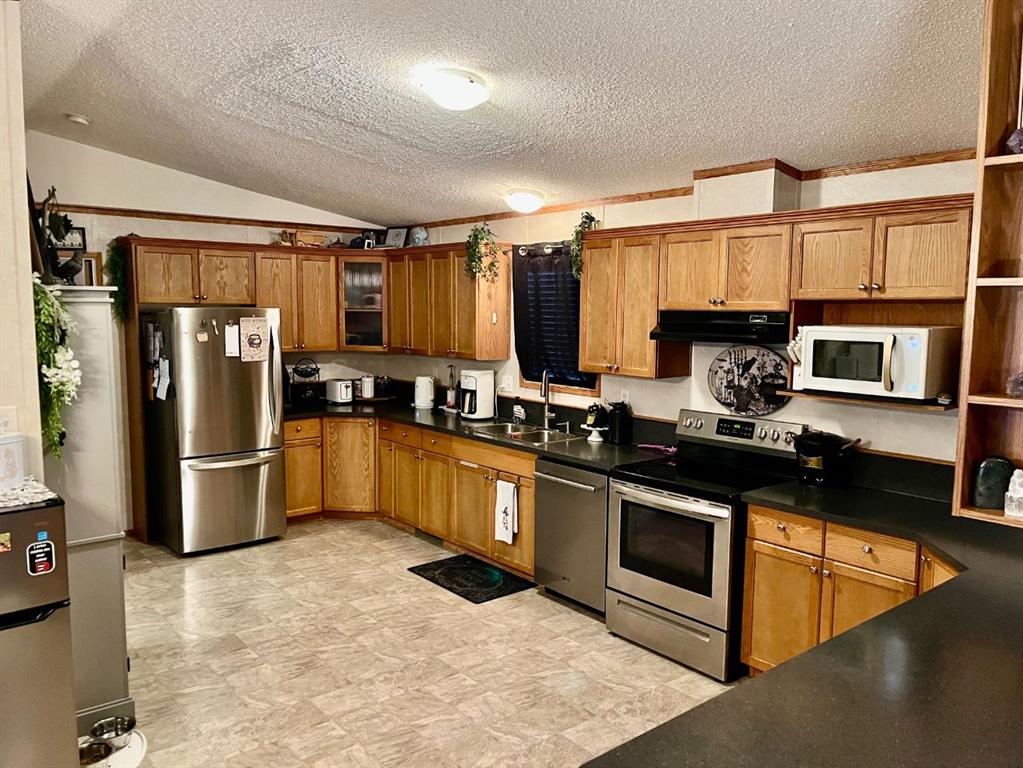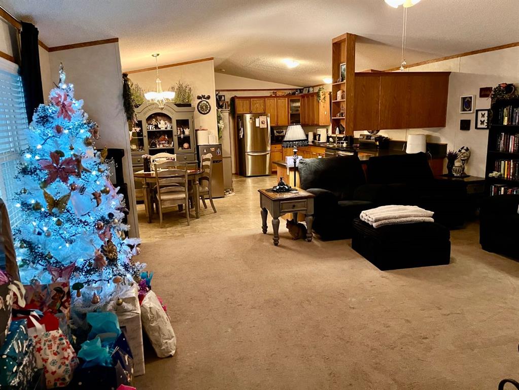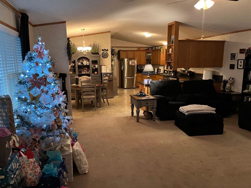 Ideal home with wheel chair access. This 2012 home is 1520 sq ft. 4 bedrooms and 2 full baths, one bathroom is set-up with an easy access walk-in shower. The living room, dining room and kitchen is an open floor plan with 9 ft. vaulted ceilings. The spacious kitchen is equipped with stainless steel appliances and an abundance of cabinetry with the dining area off to the side. The living room is a comfortable area for the family to enjoy. At the one end is 3-bedrooms and a 3-pce. washroom with a walk-in...