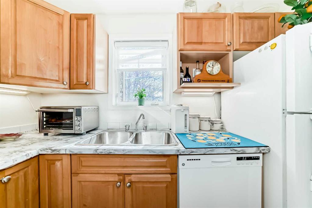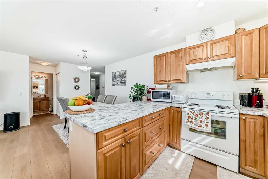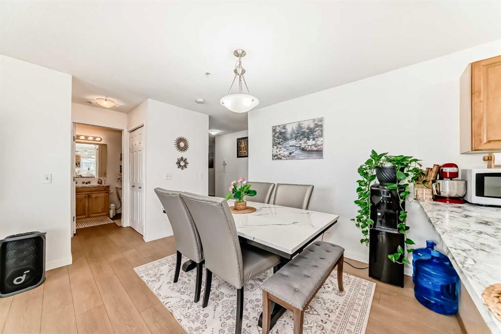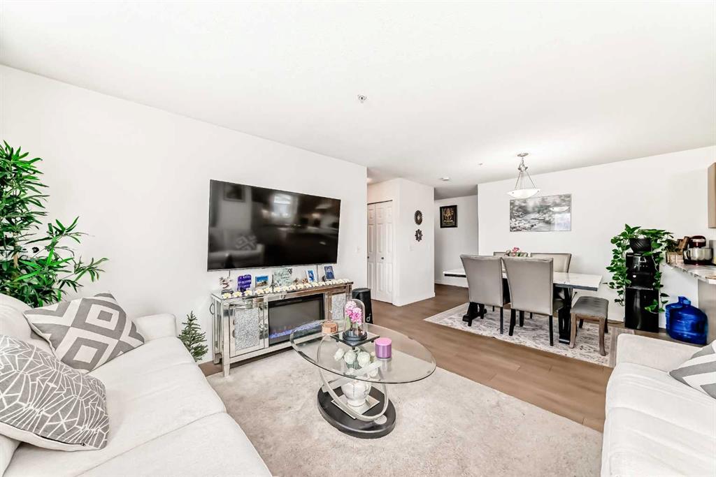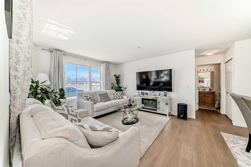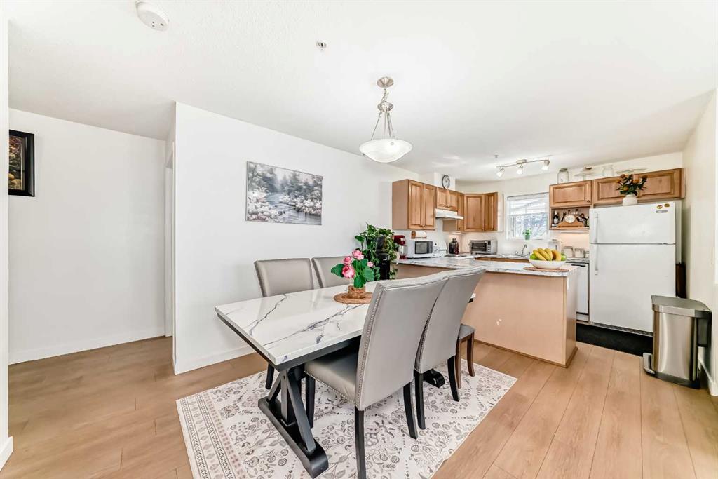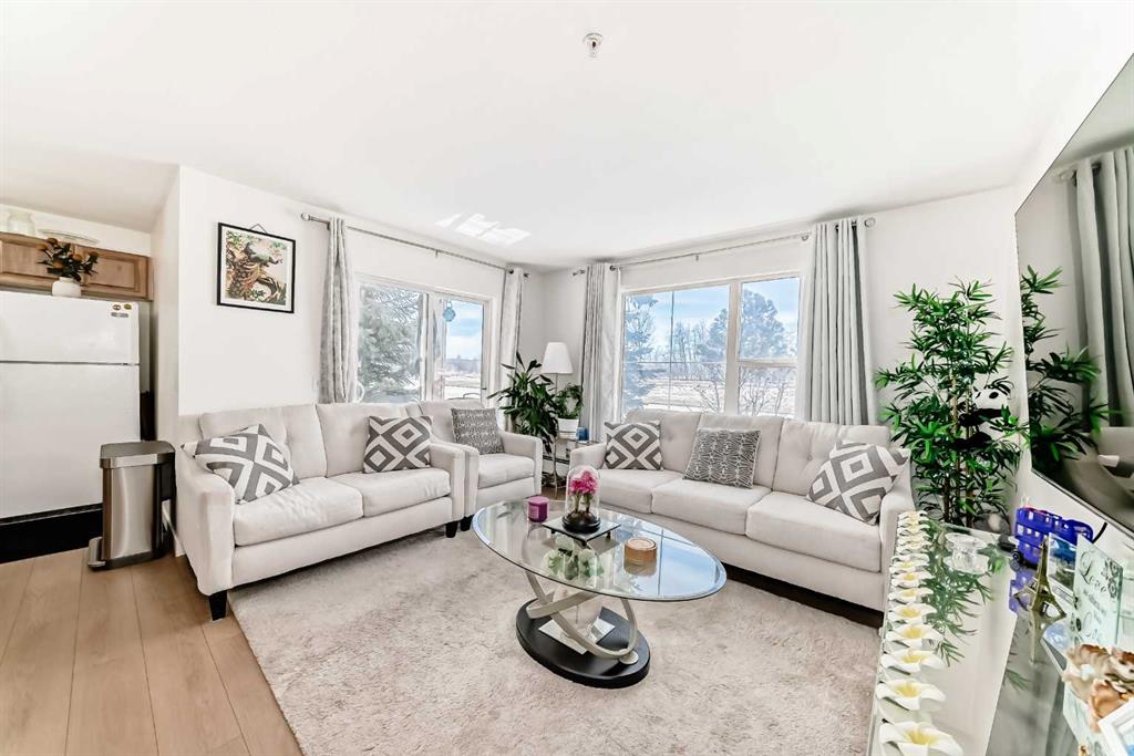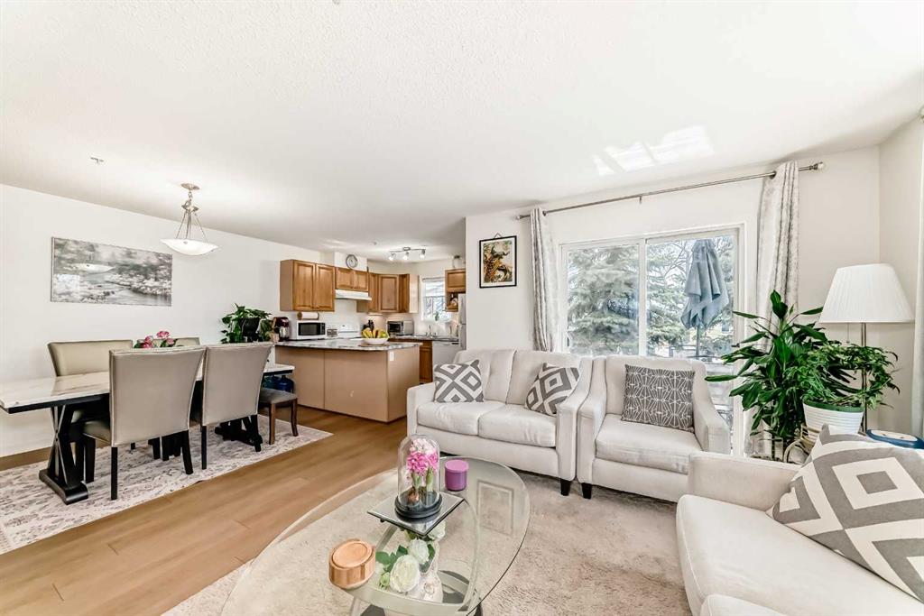 Stylishly updated 933 sq. ft. condo in an easily accessible location on Railway Street, just steps from Elizabeth Street in the heart of Okotoks. This bright unit features modern laminate flooring throughout and soft, inviting paint colours that enhances the clean, contemporary feel. The open-concept design offers a spacious living and dining area, ideal for everyday living and entertaining. The kitchen includes sleek countertops, generous cabinetry, and included appliances for added convenience. Two well-s...