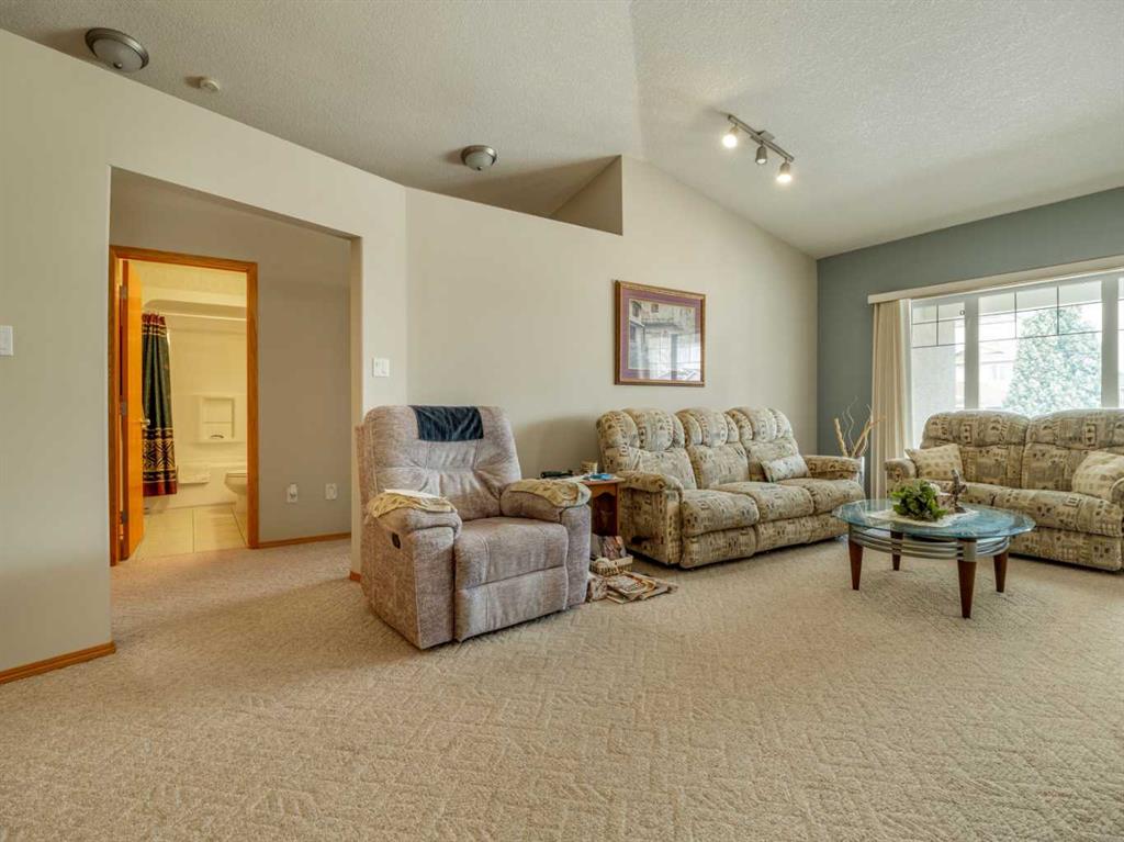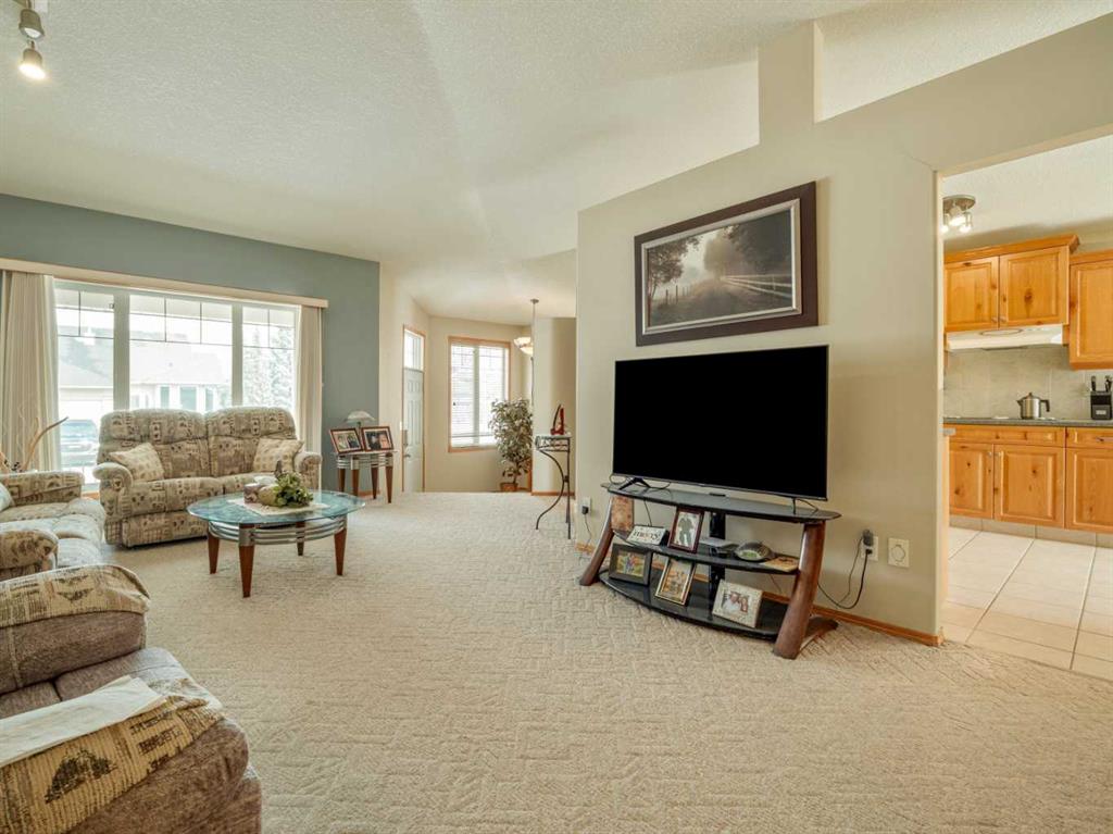 Original owner now selling this custom designed raised bungalow in Riverstone! HOME INCLUDES ALL MAJOR FURNITURE(except tv). Nice front porch to enjoy with good curb appeal. Underground sprinklers in the front for your lawn. Welcoming entry with front closet. Main floor features vaulted ceilings with berber carpet in living room. Large windows allow plenty of natural light. Kitchen is large with knotty pine cabinets, composite countertops, and good size pantry. Dining room continues with tile floors and sli...