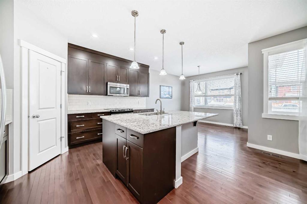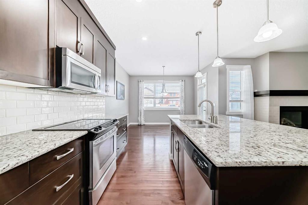 Discover this beautiful home fronts onto lush green space with direct access to ravine walking paths. The bright, open-concept main floor is bathed in natural light, beautifully illuminating the rich hardwood floors. In the heart of the home, a stunning tiled fireplace is flanked by expansive windows, creating an inviting living room perfect for relaxation. The chef-inspired kitchen is designed for both style and function, featuring a massive central island, high-end stainless-steel appliances, full-height ...