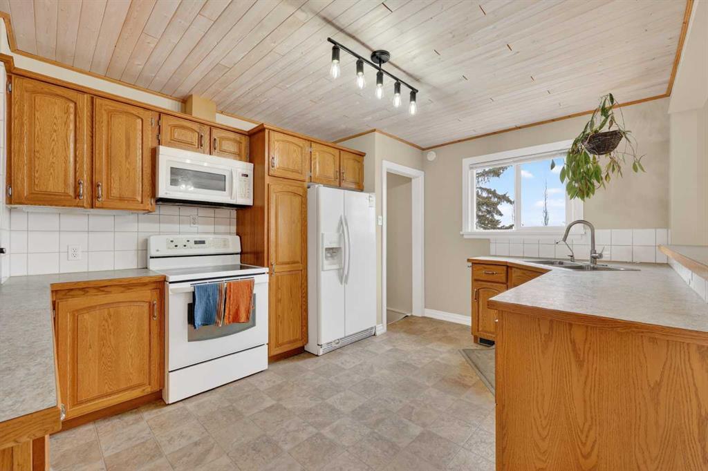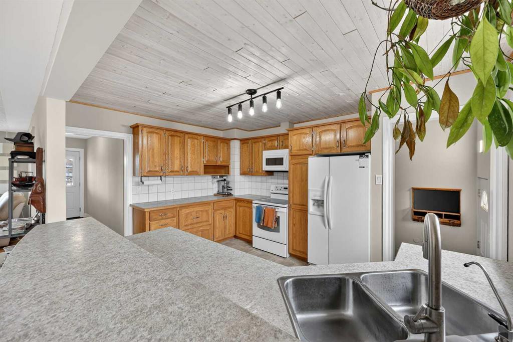 ACREAGE FEEL with the convenience of in-town living! This nearly HALF ACRE PROPERTY offers the privacy you’ve been searching for. Ideally located on the edge of town where you can enjoy peaceful sunrises from your private back deck and watch the sunsets from the spacious front deck. The OVERSIZED (32' x 24') HEATED SHOP is a standout feature with 12’ ceilings, a 10’ door, subpanel, and 220 power—perfect for hobbyists, storage, or a workshop. The shop roof was replaced in 2025. This solid BUNGALOW, with almo...