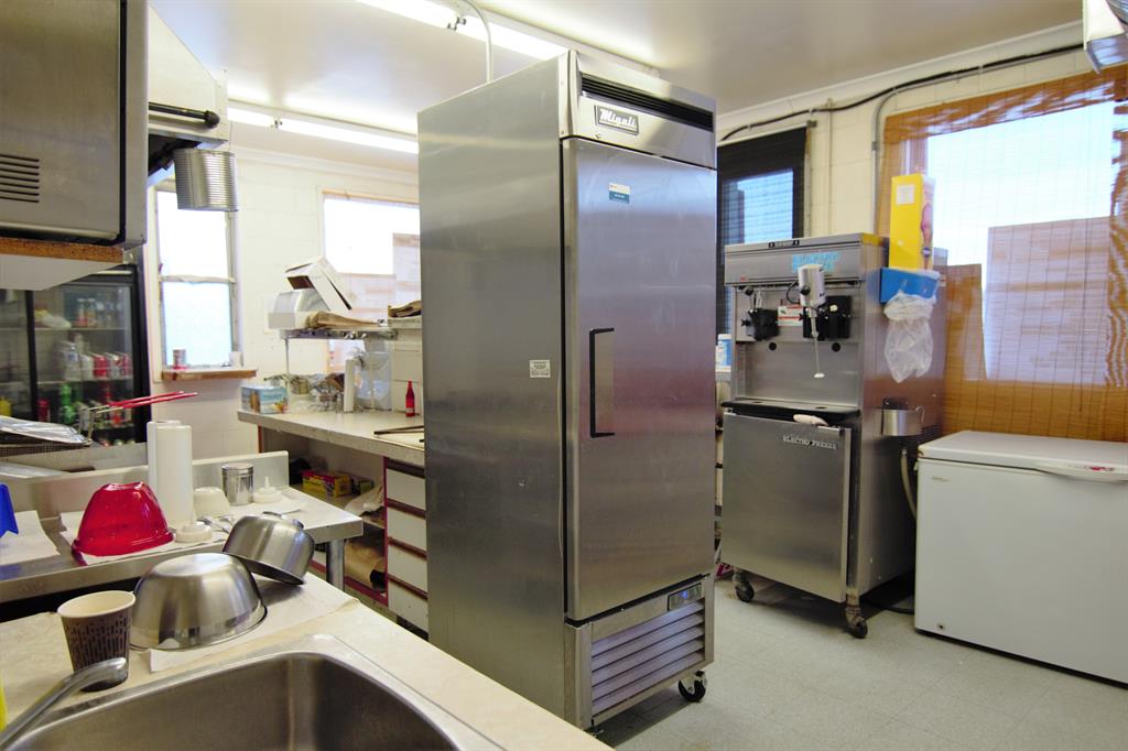 Location , location, location!! Great opportunity for a business down and live up. Great location on the main highway going south on #2. Burger and ice-cream drive-thru is excellent for clients wanting to stop quickly on their way through town. Also great for customers taking a drive on a Sunday. 40 mins south of Calgary city limits. Over 1500 sq ft. Upstairs has a one bedroom resident for the owner operator. The residence has been completely renovated a year ago. One bedroom, 4 pce bath, large open kitchen...