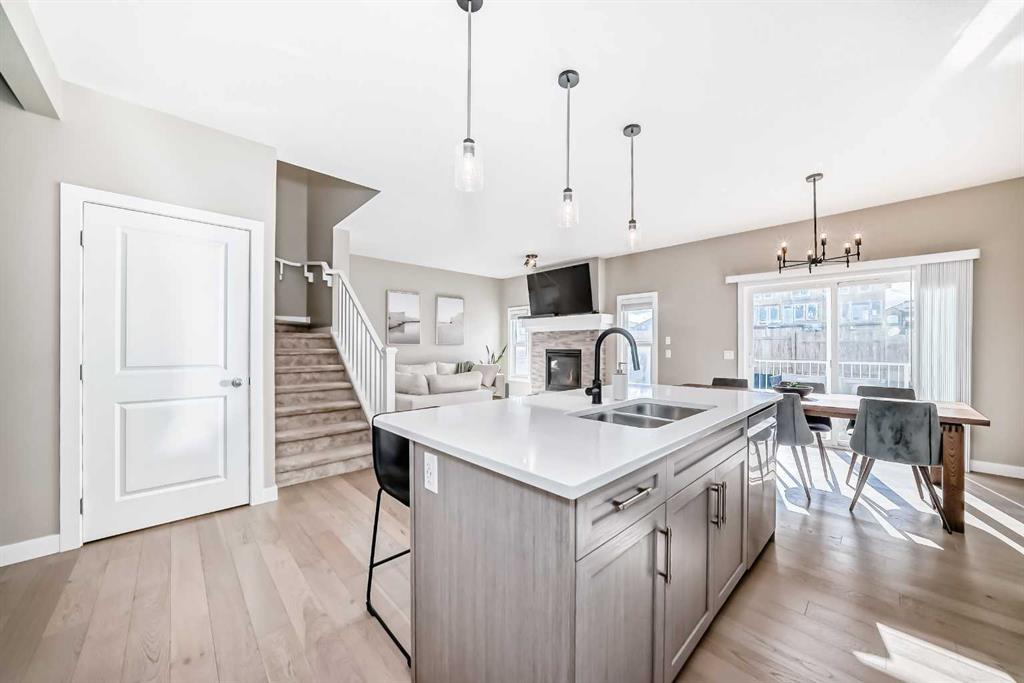 Welcome to 215 KINNIBURGH ROAD! Over 2300 sq ft of living space! Truly move-in ready, this well maintained four bedroom, 2.5 bath home offers a bright, open layout and great curb appeal with its double attached garage and inviting front entrance. Step inside to a sunlit main floor where the kitchen stands out with quartz countertops, a large island, pantry, stainless steel appliances, and modern finishes, all opening into the dining area and comfortable living room featuring a mantled gas fireplace and ston...