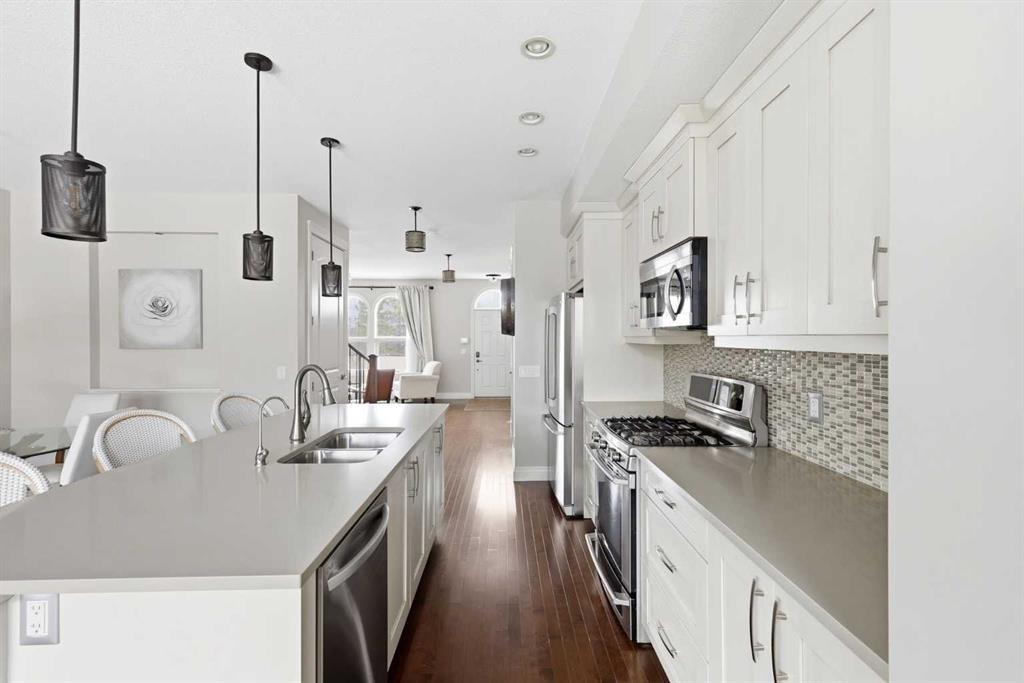 Experience the best of Quarry Park in this former show home, perfectly situated on a quiet boulevard just one block from the scenic Bow River pathways. With over 2,300 sq ft of thoughtfully finished living space up and down, this striking two-storey townhome offers a modern, open layout designed for both everyday living and entertaining. The main floor features a bright, open-concept design with a chef-inspired kitchen showcasing quartz countertops, stainless steel appliances, abundant cabinetry, and a larg...