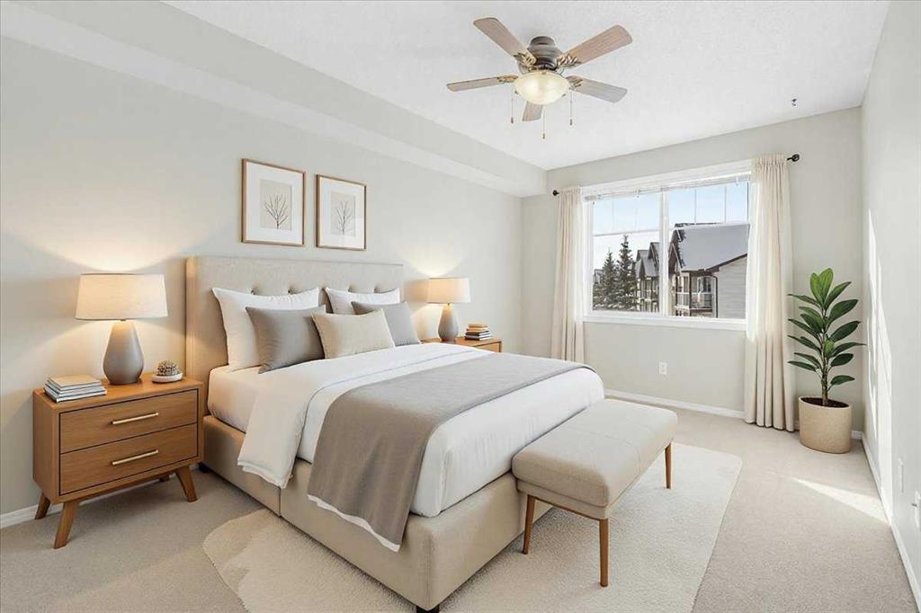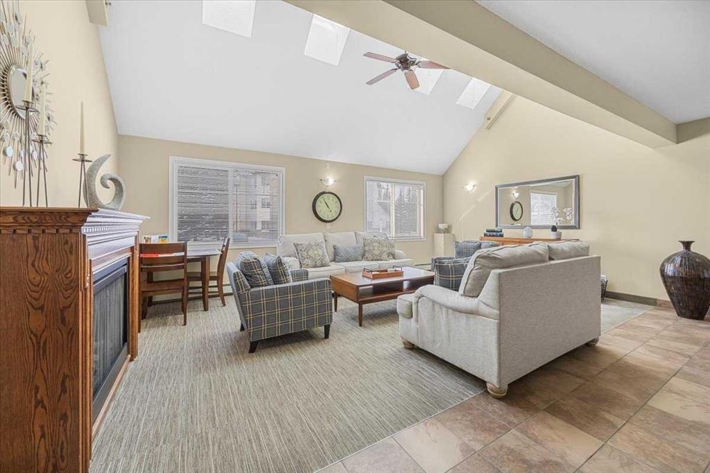 Welcome to Calvanna Village, a highly desirable 55+ community in the heart of Okotoks—perfect for those seeking a relaxed, low-maintenance lifestyle with a strong sense of community. This bright, south-facing one-bedroom condo is sure to impress! The spacious living and dining area is perfect for entertaining or enjoying quiet evenings, while large windows flood the home with natural light. The separate kitchen offers plenty of cabinet and counter space, and the convenience of in the suite laundry makes eve...