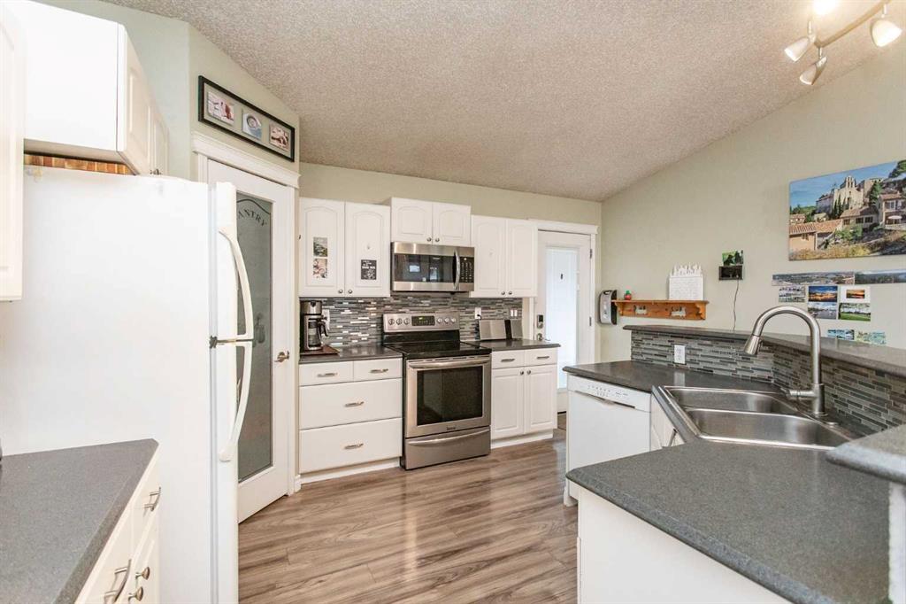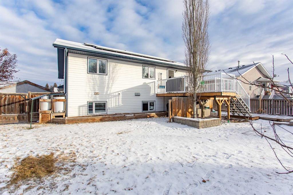 Welcome to this spacious 1520 sq ft family home in the desirable Iron Wolf community of Lacombe. Designed for comfort and room to grow, this property offers 5 bedrooms (3 up/2 down), main floor laundry, and a bright, functional kitchen with an abundance of cabinetry and a corner pantry. The lower level features in-floor heat, a generous family room, and a den with French doors—perfect for a home office, hobby room, or quiet retreat. Numerous upgrades include new windows (2025) and solar panels, adding long...