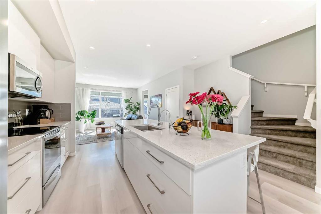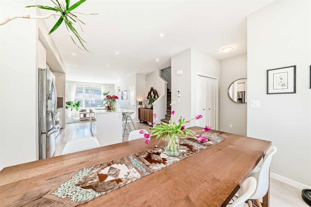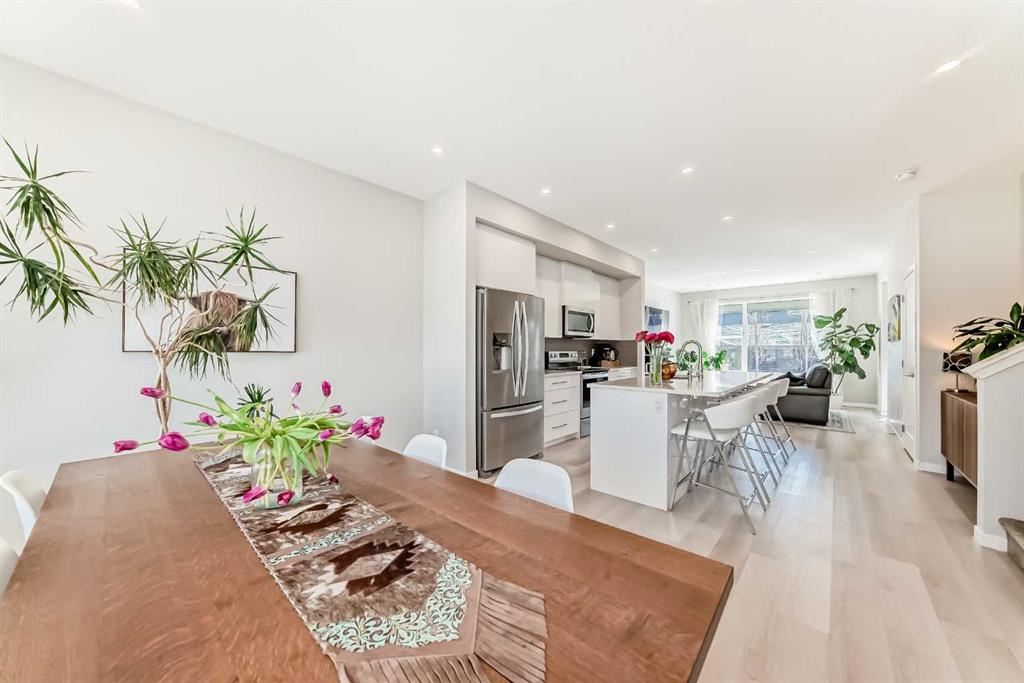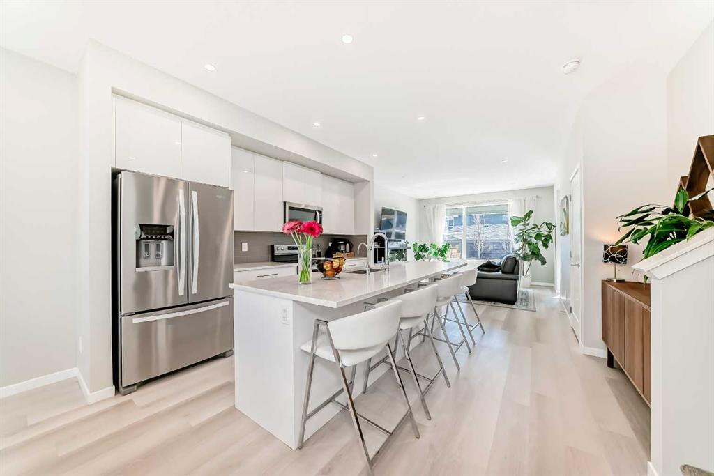 Why wait to build when you can move right in? This beautifully maintained, like-new D'Arcy Ranch semi-detached offers over 2,000 sq. ft. of fully developed living space, including a finished basement and a sun-soaked south-facing backyard. From the moment you step inside, the meticulous care put into this home is evident. Luxury vinyl plank flooring runs throughout the main level, connecting the front dining area, kitchen, and living room. The chef's kitchen is beautifully finished with ceiling-high cabine...