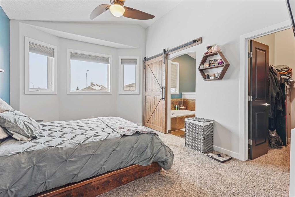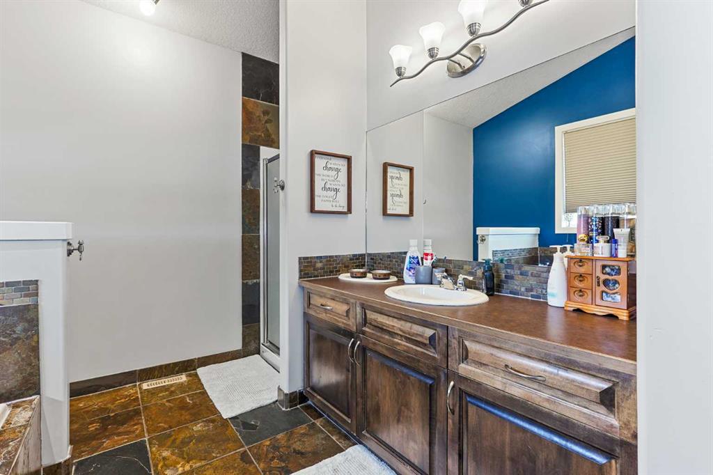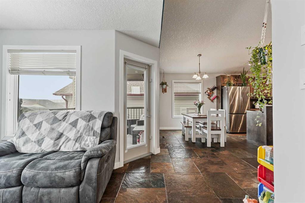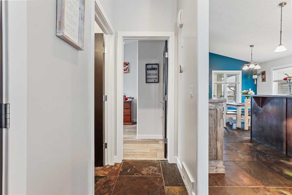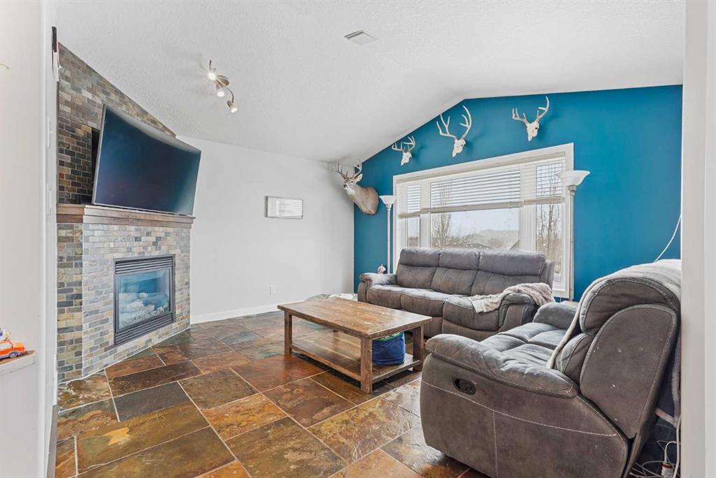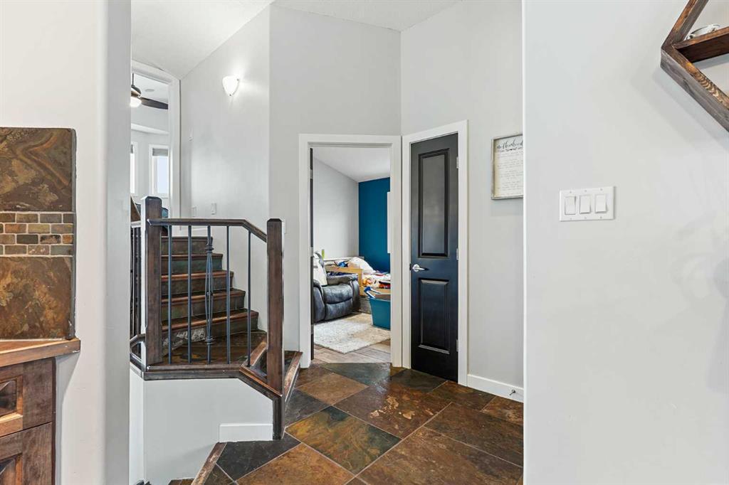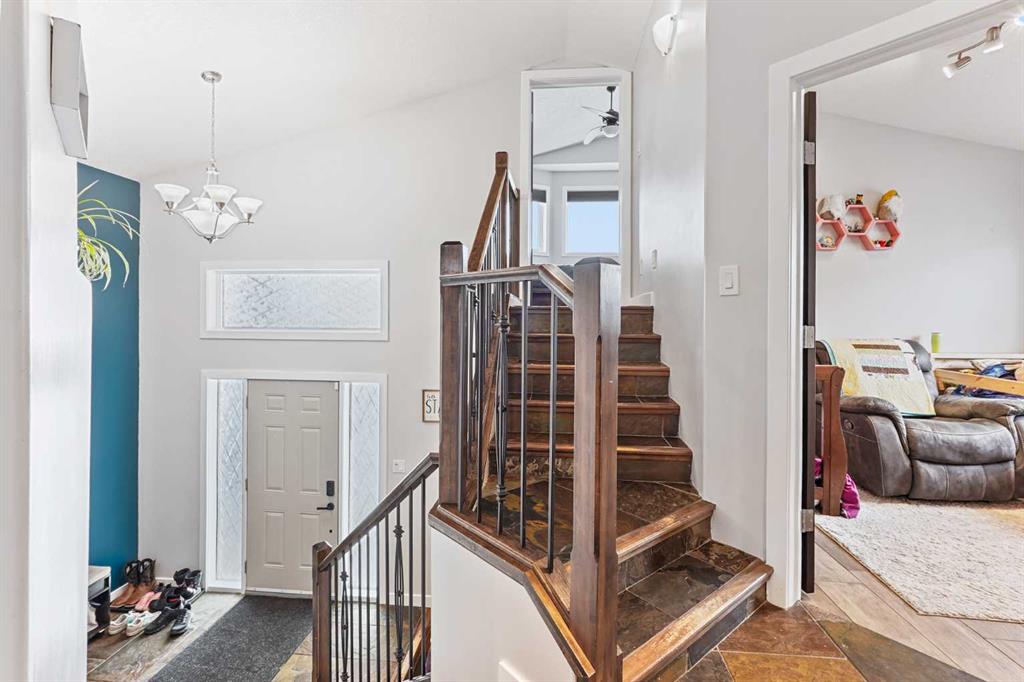 This modified bi-level home offers a balanced layout that prioritizes both natural light and personal privacy. The main floor features airy vaulted ceilings and durable slate flooring that runs through the primary living areas, anchored by large windows that bring in sun throughout the day. A standout feature of the floor plan is the master suite, which is positioned privately above the double attached garage and includes its own four-piece ensuite. Two additional bedrooms and a second full bathroom complet...
