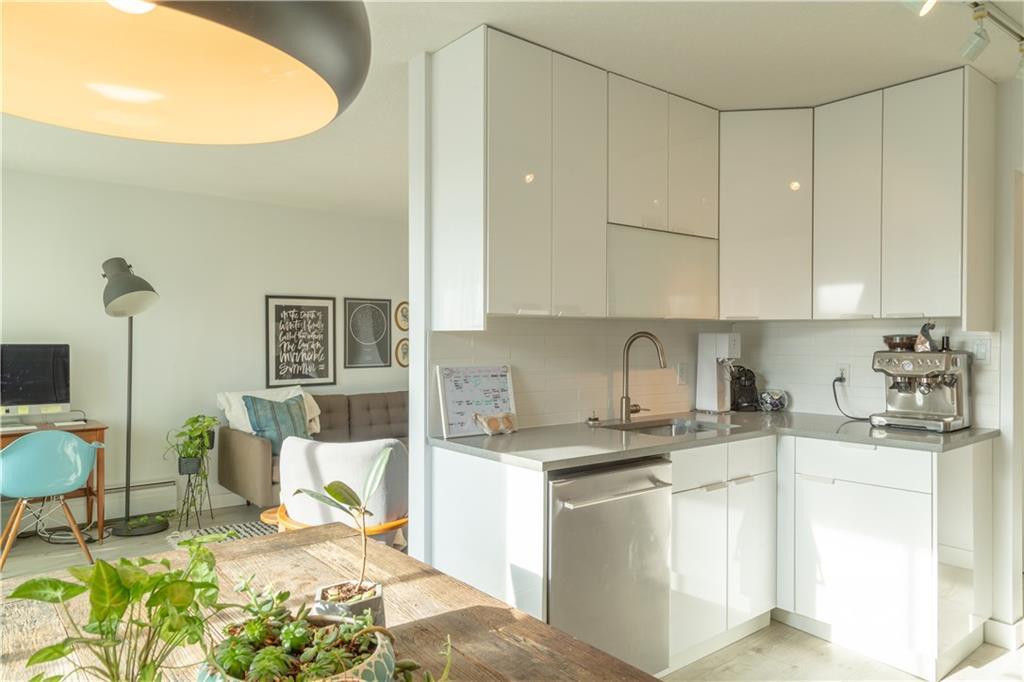 Wake up to sun-filled south-facing sunshine and soak in the natural light that fills this beautifully updated condo. With a stylish mid century modern vibe, this move in ready unit offers the perfect blend of character and comfort right in the heart of the city. Step inside to an inviting main living space that feels both open and welcoming, the ideal spot to unwind or entertain. The kitchen is thoughtfully designed and highly functional, seamlessly overlooking a generous dining area that is perfect for hos...