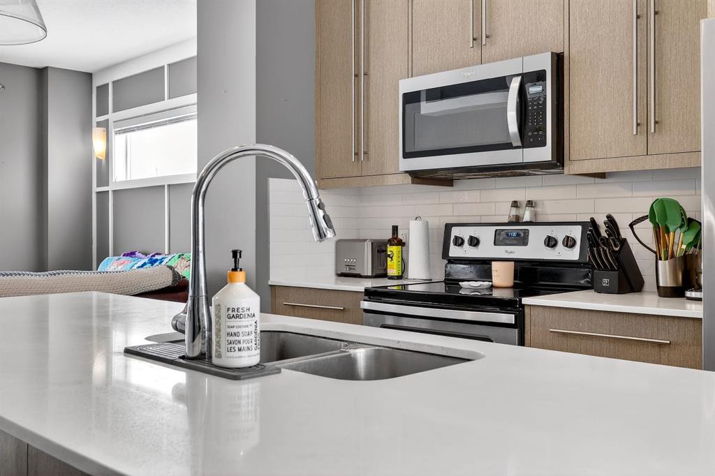 Welcome Home to this move in Ready 3 Bedroom 2.5 Bath END UNIT located in the Sought after Neighbourhood of Rainbow Falls in Chestermere! From the moment you enter the front door you are welcomed with a BRIGHT Entry Way, Gleaming Tile Floors and a very Convenient Office/Flex Room. The Lower Level offers access to the HEATED Double Attached Garage. The Main Floor Features an OPEN CONCEPT Layout with a Spacious Living Room, Dining Room and a Gorgeous Kitchen featuring QUARTZ Countertops, STAINLESS Steel Appl...