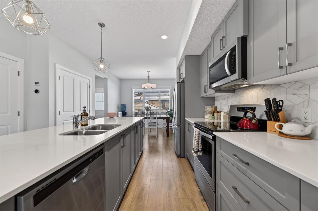 Welcome to this beautiful home, crafted by Shane Homes in the desirable Hillcrest community. This two-storey Duplex features Smart Home technology, appears brand new and boasts exceptional curb appeal. This home is a prime opportunity for you. It includes a spacious front veranda, beautiful landscaping and a stone facade. The bright, open-plan interior is impressive, with nine-foot ceilings on the main level, a spacious front room with large windows and a formal living area. The dining area, spacious kitche...