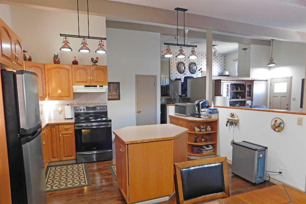 This beautifully maintained 4-level split offers 1,562 sq. ft. of comfortable living space on a large, private lot in Claresholm. With 3 bedrooms plus an open home office, it’s the perfect blend of functionality and flexibility. The vaulted ceiling and engineered hardwood create an airy, light-filled main living area, complete with custom cellular blinds. The updated kitchen features newer stainless steel appliances and opens to the dining and living spaces, making it ideal for entertaining. Two gas firepla...