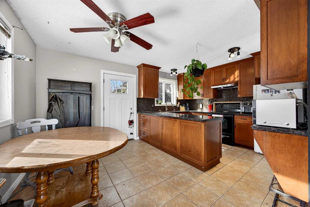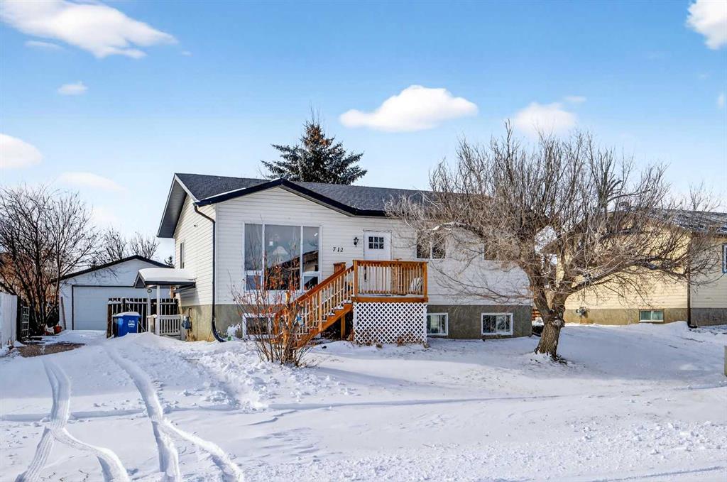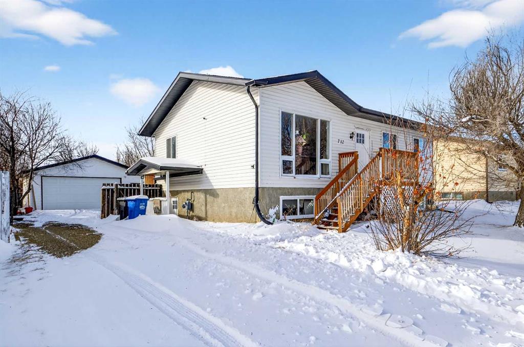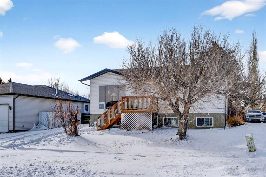 OPEN HOUSE SUN - FEB 22nd 12-3PM. What a great opportunity in the charming & peaceful community of Irricana! This lovely Bi-level is nicely situated along a quiet street on a large oversized lot with a west facing backyard. The convenient side drive-thru access provides abundant parking, boat & RV storage AND the large 24' x 24' detached garage with 9' ceilings, 8' door and 220 V power bring tremendous value to this home. Inside has undergone upgrades over the years adding a modern calming ambiance. The kit...