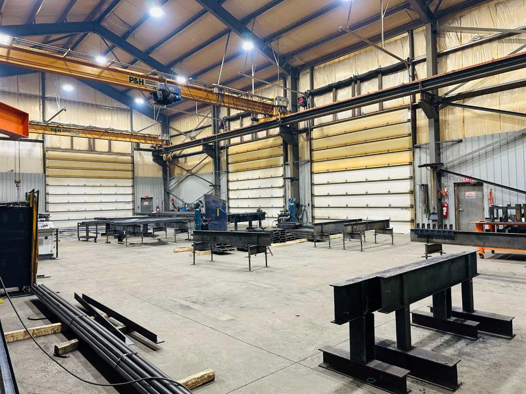 Multi building fabricating or manufacturing facility with 3 CRANES on 7 Acres just outside Grande Prairie. Great exposure to get you noticed and access right along Hwy 43. You will get 4 buildings totaling 16,978 Sq Ft and a well graveled partially fenced yard. "Shop A" is almost 7400 Sq Ft and features (2) 10 ton bridge cranes , 40' ceiling , (3) 18' H x 18' W and (1) 14' H x 15' W Overhead doors. Also has shop / office staff locker room, parts room and 2 bathrooms. "Shop C" is wide open 50' wide x 70' de...