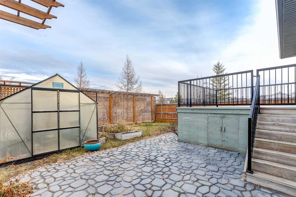 This beautifully maintained home, nestled in the serene canals of Airdrie, offers a perfect blend of comfort and convenience, backing onto green space and a school! The spacious backyard is an absolute highlight, featuring a greenhouse, raised garden beds, a well-maintained lawn, and a large privacy screen along the back fence, ensuring seclusion while you enjoy the outdoors. The expansive back deck, accessible from the eating nook, provides a perfect space for outdoor entertaining, with stairs leading down...