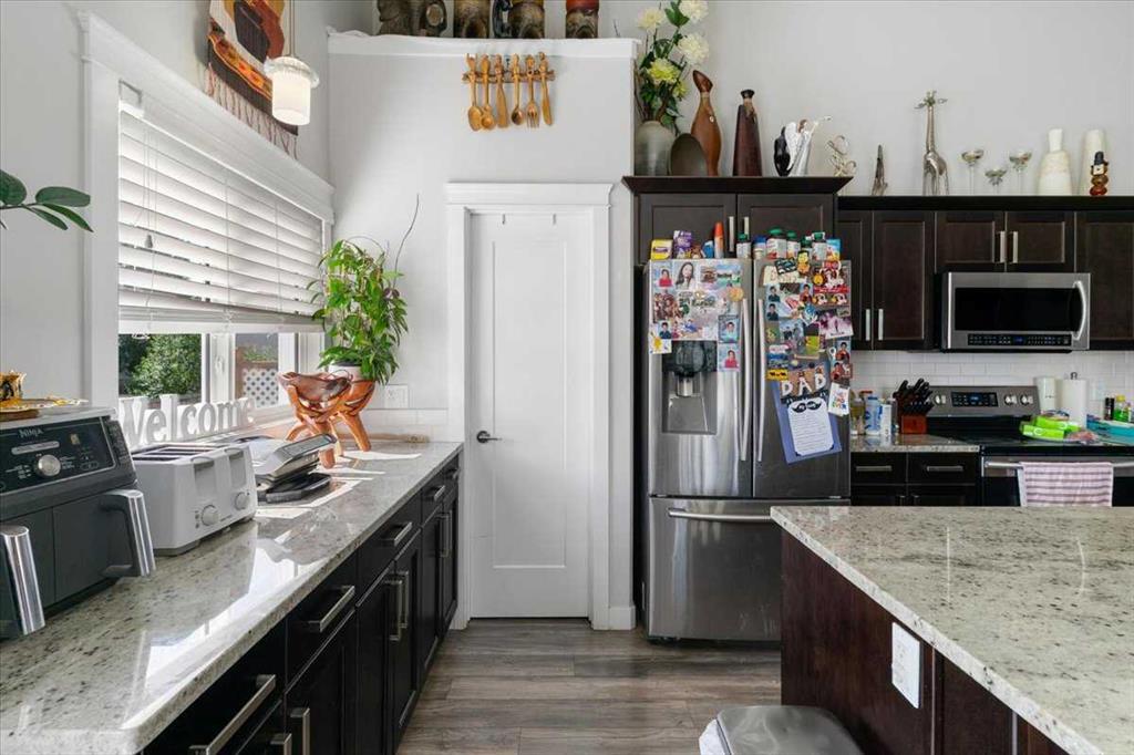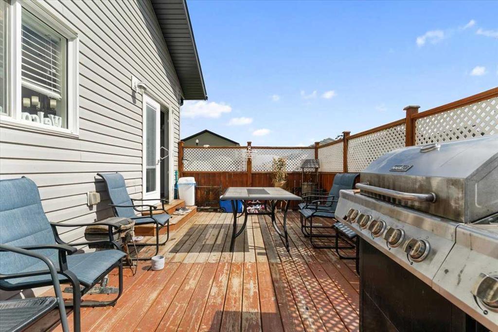 Nestled on a corner lot in the sought-after Signature Falls community, this custom-built modified bi-level (2016) offers functional family living with modern finishes and room to grow. A welcoming tiled foyer leads to the open-concept main floor where the kitchen, dining, and living areas flow together seamlessly. The kitchen showcases granite countertops, espresso cabinetry, and a large island, with patio doors extending the space onto a large deck. The living room, anchored by a gas fireplace, is perfect...