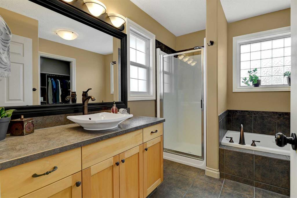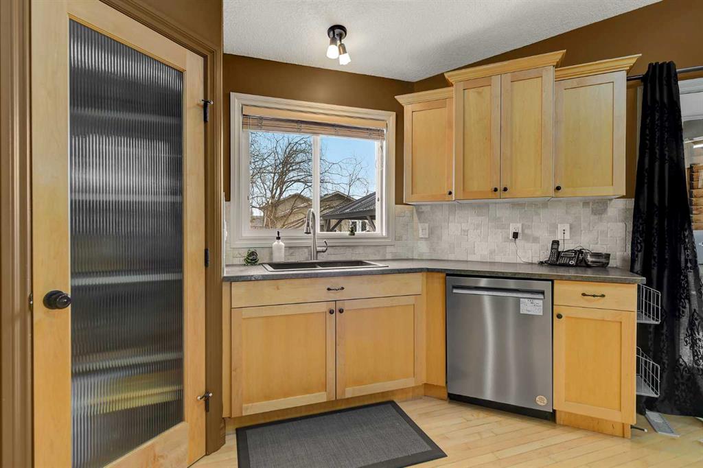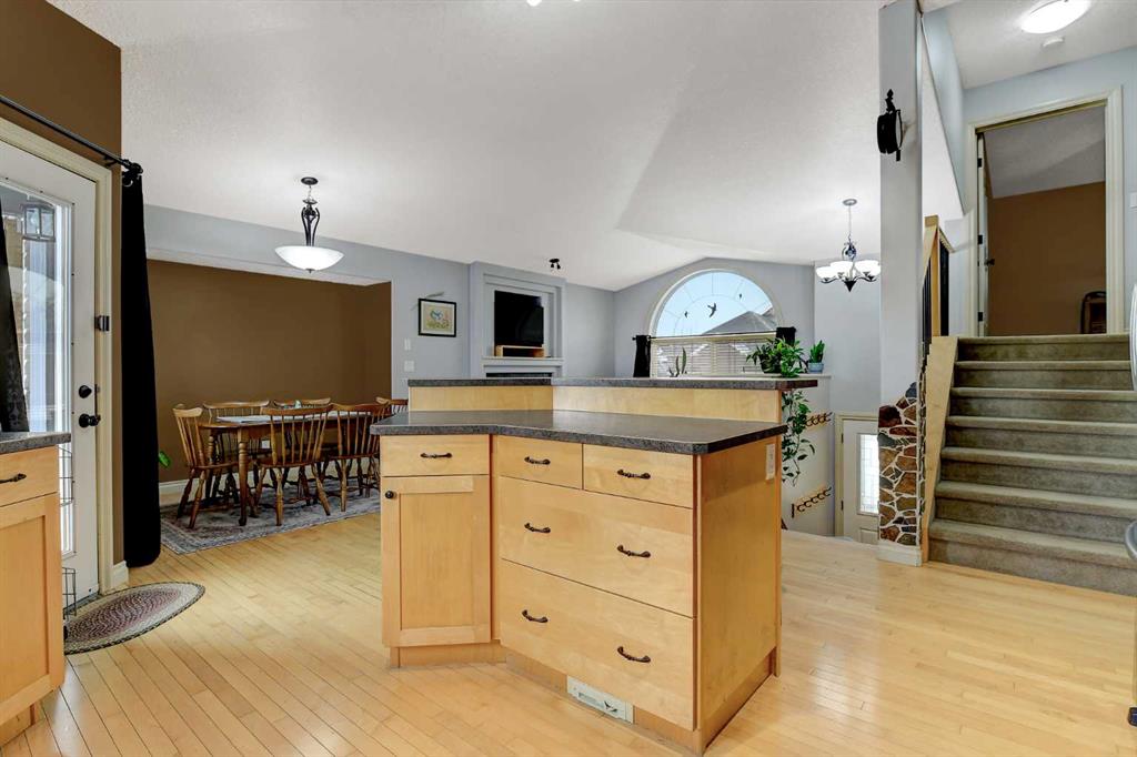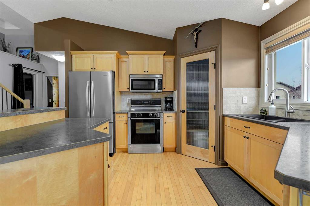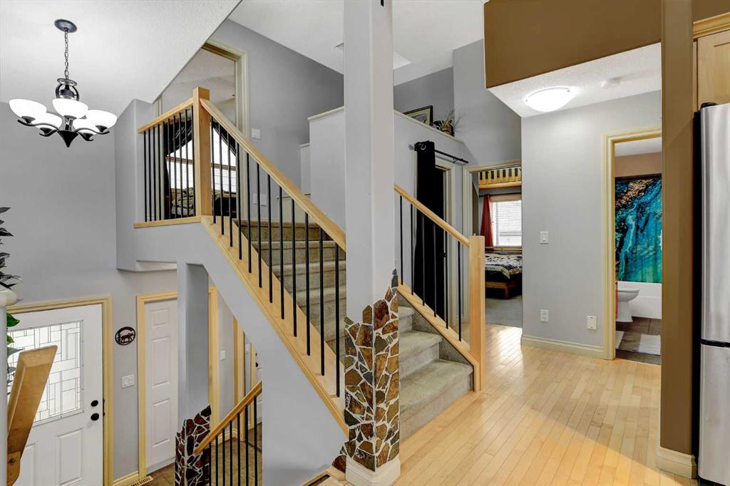 Welcome to this clean, beautifully maintained modified bi-level offering 1653 Sqft of well designed living space. Located directly across the street from Crystal Lake and its endless walking trails. This spacious layout features a massive primary bedroom complete with ensuite with jetted tub, separate shower and walk in closet. The main floor offers functionality with open kitchen with island and eating bar, maple cabinets, living room with cozy fire place,2 additional bedrooms, a full bathroom, and laun...