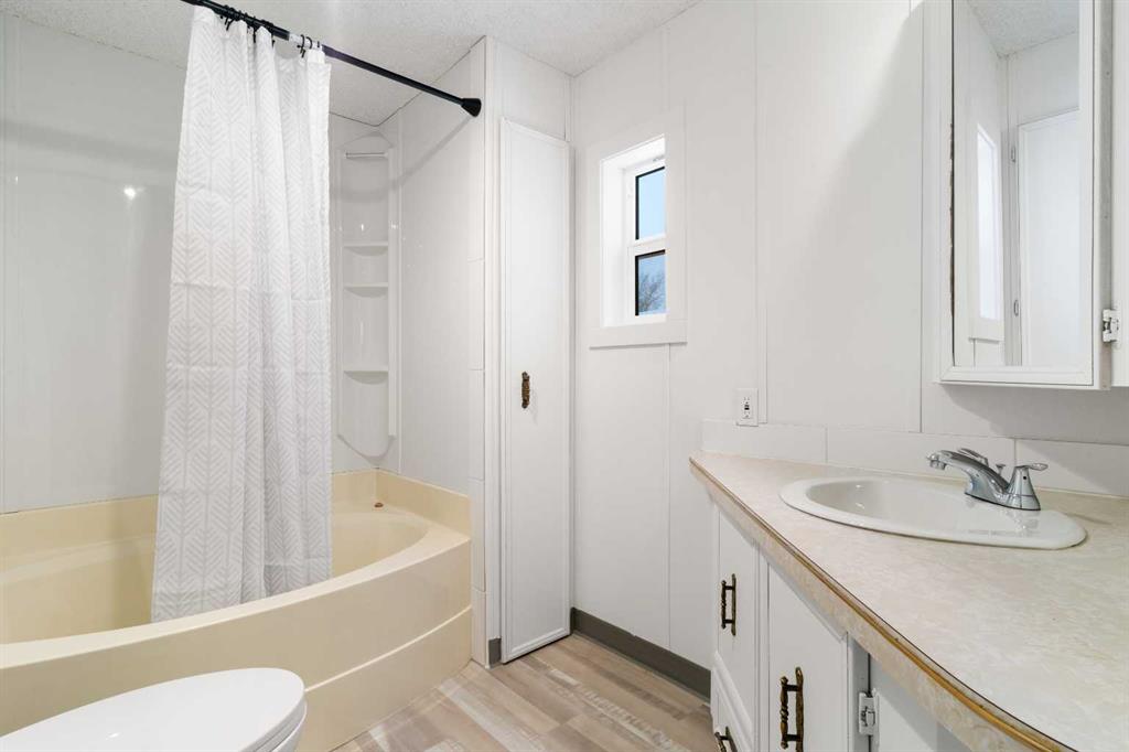 Bright and Cheery 1316 SQFT Manufactured home on its OWN MASSIVE CORNER LOT with rear alley access! 3 beds 2 baths. Fenced yard with shed. Huge Driveway enough for a RV parking + more! Immediate Possession Available. ***With $13,000 down (5%) this could be a great starter home or rental property!